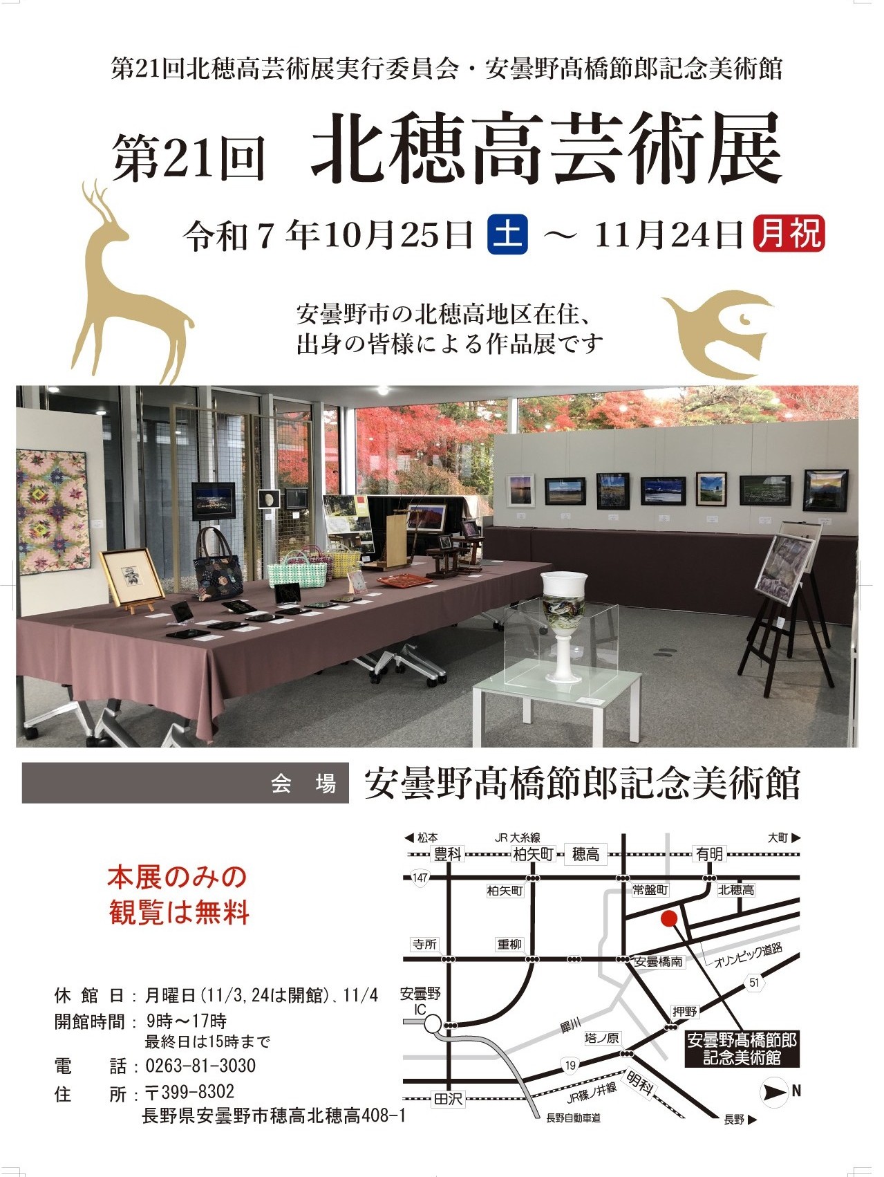 来る、10月25日(土)~美術館が建つ北穂高地区の芸術作品展がはじまります。今年はオープニングに津軽三味線三姉妹「乃音」さんが登場。演奏と唄で展覧会を盛り上げてくださいます。ぜひお越しください。